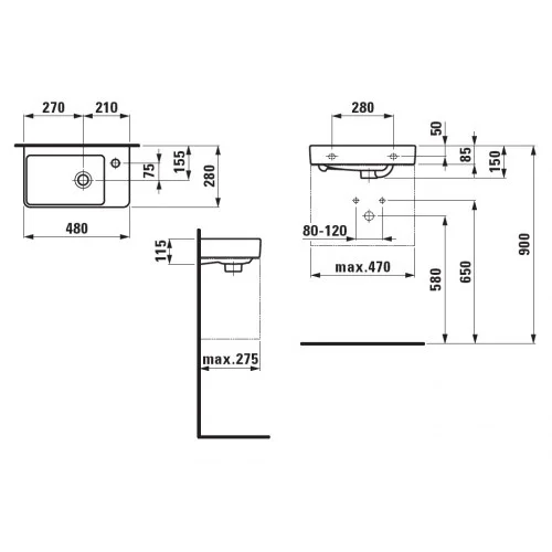Раковина Laufen Pro S 1595.4 (8.1595.4.000.104.1).Размер: 480x280x150мм. Вес: 9 кг. Цвет: Белый.