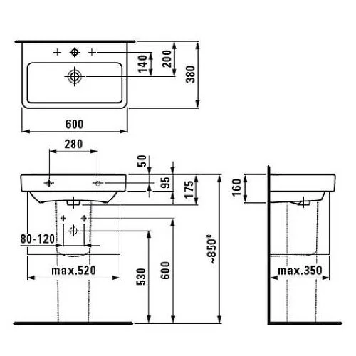 Купить Раковины подвесные производства Laufen (Швейцария), коллекция Pro S, код товара: 124855 можно выгодно в Сантемо.ру: