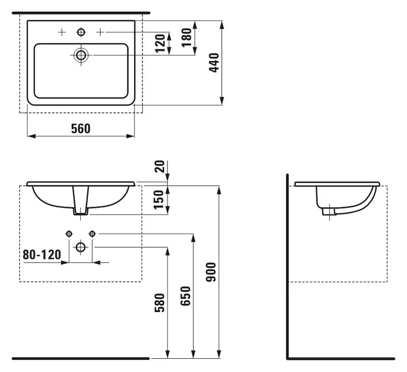 Раковина Laufen Pro S 1896.3 (8.1896.3.000.104.1), встраиваемая сверху.