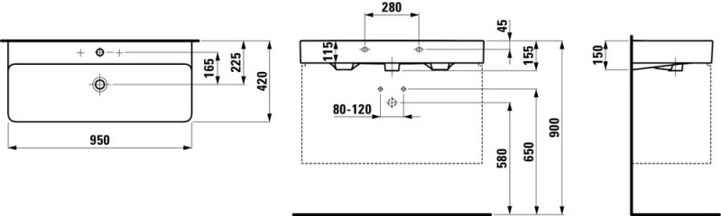 Раковина laufen Val 1028.7 (8.1028.7.000.104.1) с отверстием под смеситель. Размер: 950x420х150 мм. Вес: 19 кг. Цвет: белый.