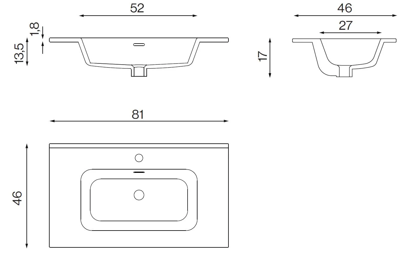 Накладная столешница на тумбу с интергрированной раковиной NOFER серии F5 коллекции VOLTERRA выполнена из керамики. На столешнице есть отверстие под смеситель, перелив с хромированной отделкой, отверстие для слива.