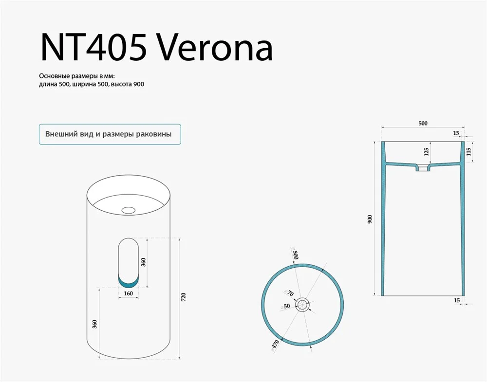 Раковина NTBagno Verona NT405, 50 х 50 х 90 см