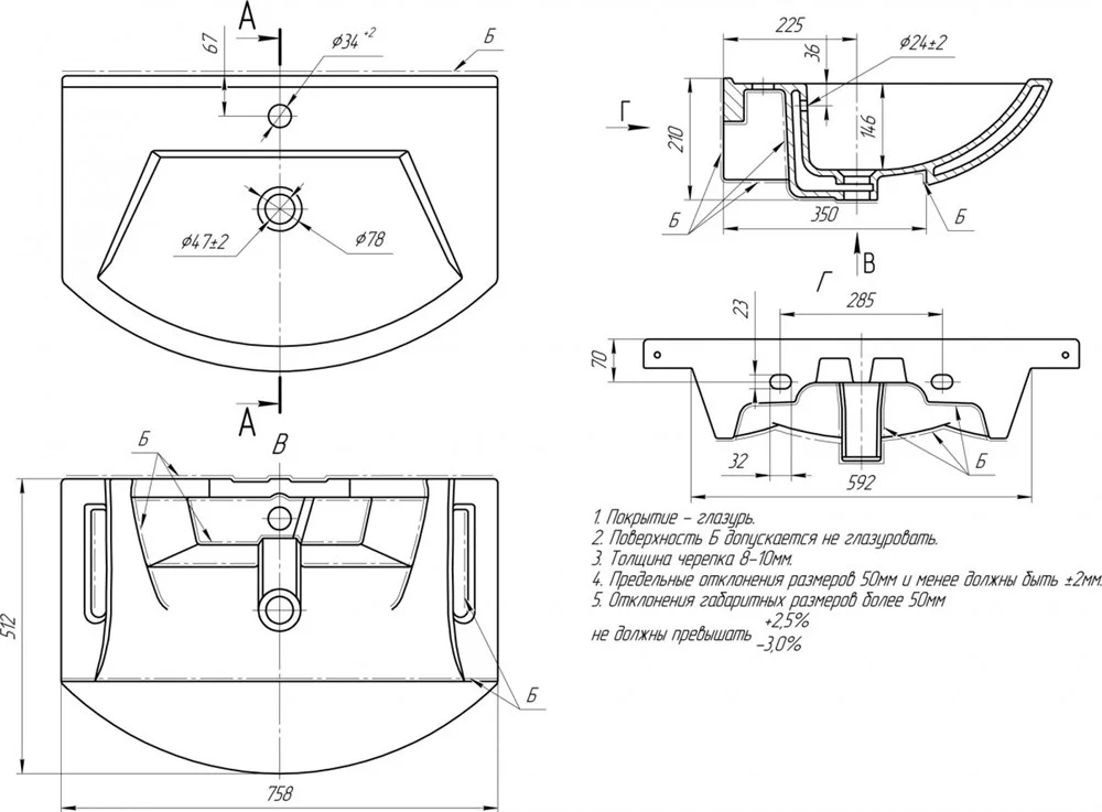 Раковина Opadiris Dreja Альфа 75 см 192536