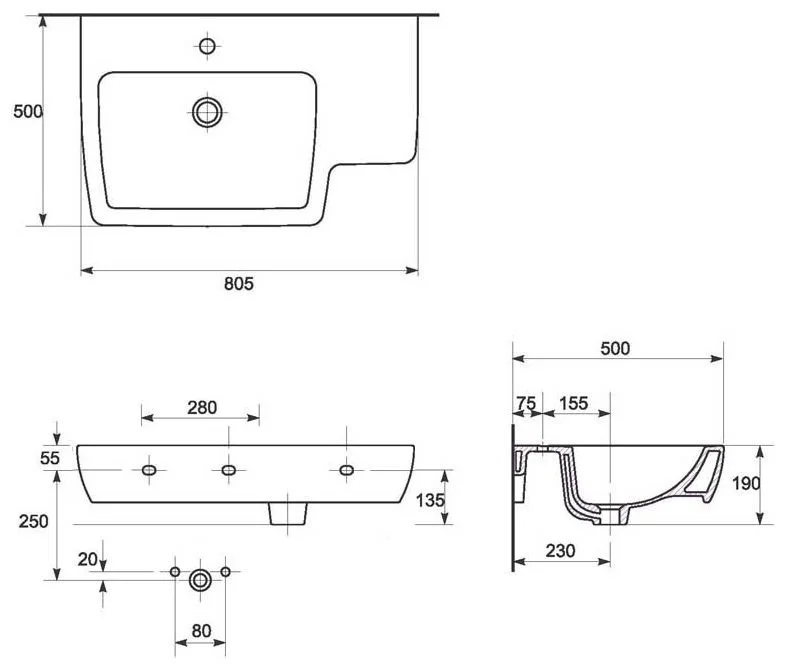 - Отверстия под смеситель: на 1 отверстие