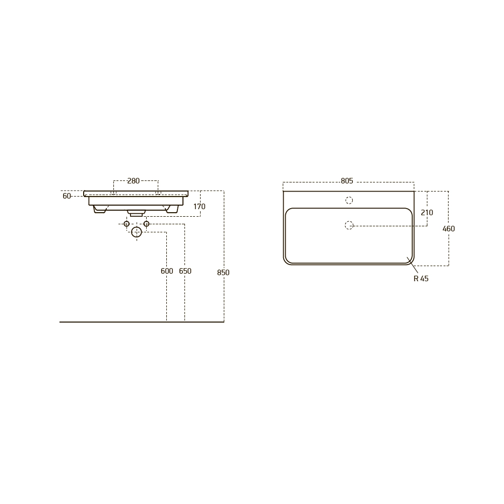 Умывальник спроектирован таким образом, что при его использовании вода не разбрызгивается. Вокруг чаши предусмотрено много функционального пространства, чтобы расставить аксессуары.