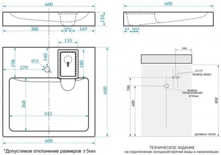 Раковина Paulmark WELT 730308,черная, 60х60 PM730308