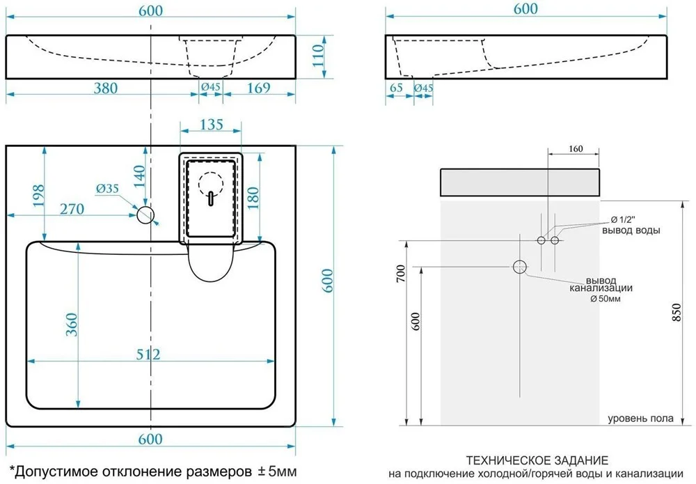 Раковина Paulmark WELT 730328,бежевая, 60х60 PM730328