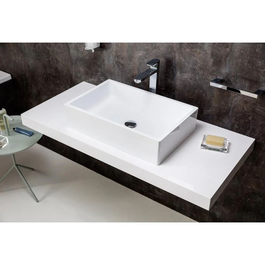 Умывальник устанавливается на столешницу, монтаж на стену невозможен. Данный умывальник без перелива, поэтому необходимо использовать неподвижный излив для умывальника.