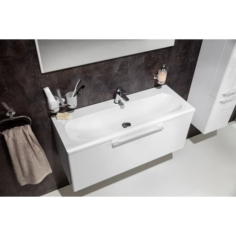 Умывальник Ring с закругленными краями оформлен в том же дизайне, что и одноименный шкафчик, к которому он предусмотрен. Данный умывальник не предназначен для самостоятельного использования, возможна лишь установка в комбинации со шкафчиком.