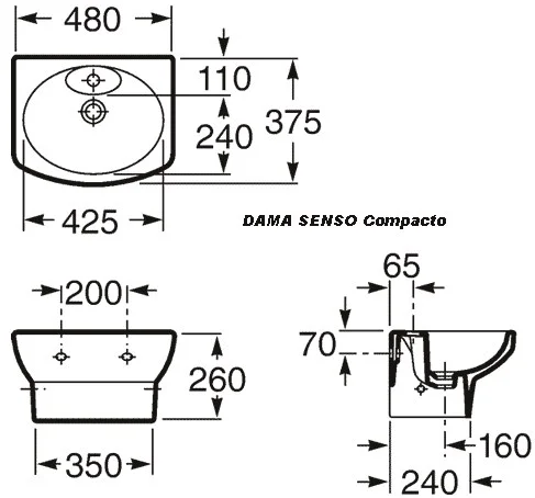 Купить Раковины подвесные производства ROCA (Испания), коллекция Dama Senso, код товара: 106460 можно выгодно в Сантемо.ру: