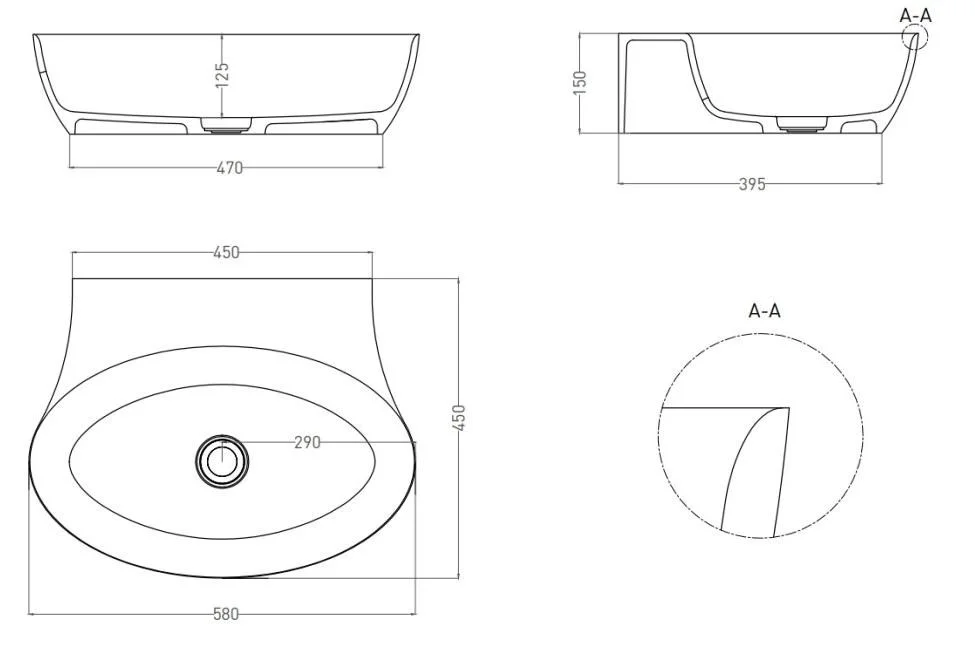 При заказе необходимо указать желаемый тип установки раковины: на стену или столешницу.