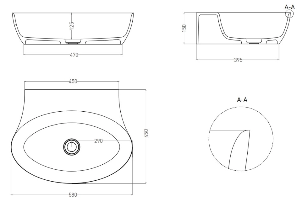 Раковина Salini ALDA WALL 02 покраска по RAL полностью 140322MF 580x450 накладная S-Stone