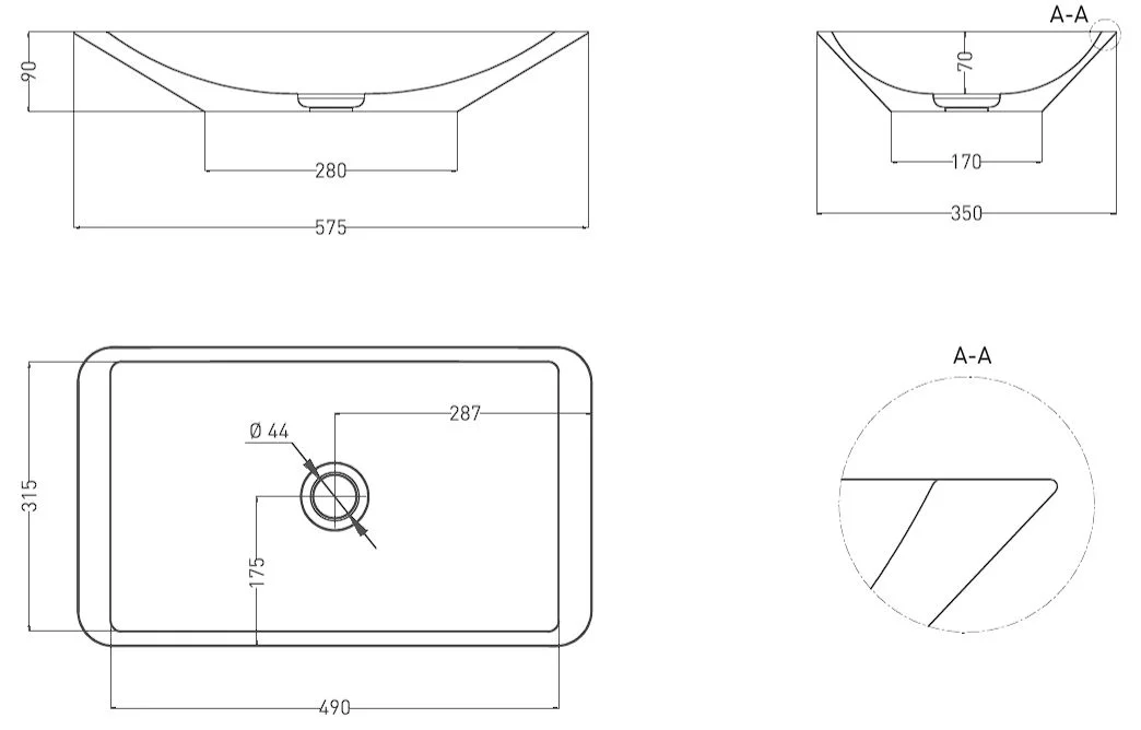 Раковина Salini CALLISTA 03 1101107G 575x350 накладная S-Sense