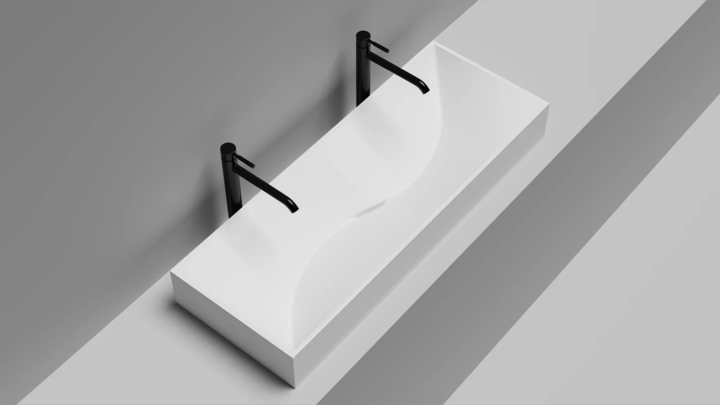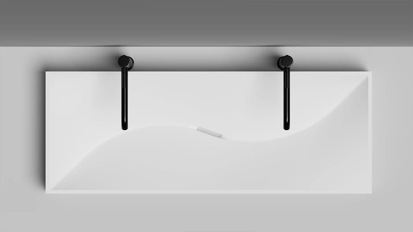 Удлинённую раковину SONATA можно разместить как накладную на тумбе DOMINO или столешнице COSTA. Модель также подходит для подвесной установки на анкерах.