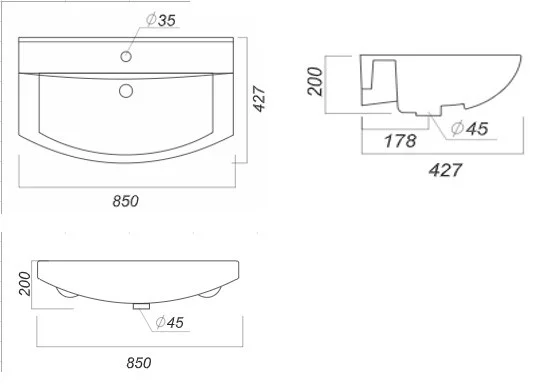 Раковина SANITA LUXE BEST 85 WB.FN/Best/85-C/WHT.G/S1