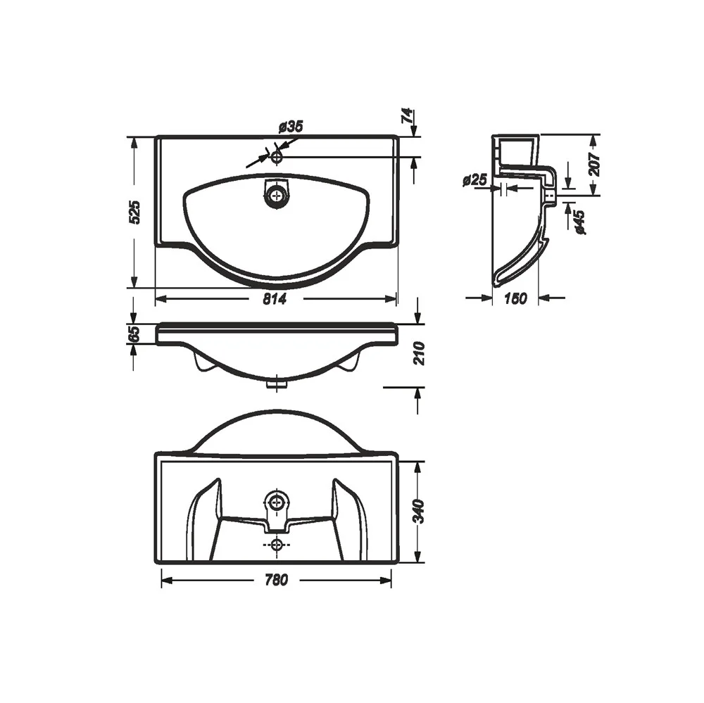 Раковина SANITA LUXE Classic 83 WB.FN/Classic/80-C/WHT.G/S1
