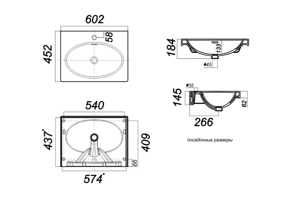 Раковина Sanita Luxe Next 60 NXT60SLWB01