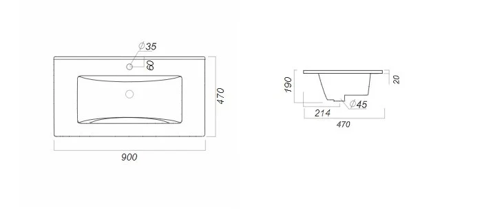 Раковина SANITA LUXE Quadro 90 WB.FN/Quadro/90-C/WHT.G/S1