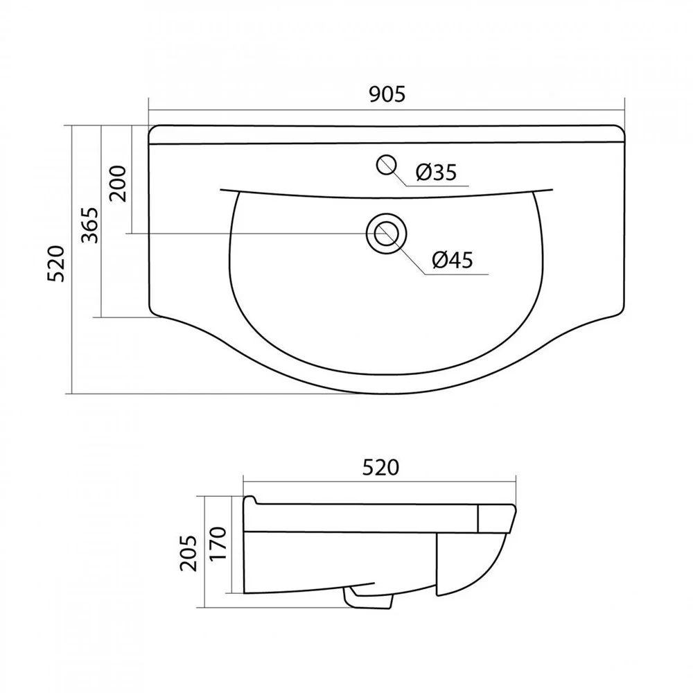 Керамическая раковина Santek ЭЛЬБРУС 90 отличается удобной округлой формой, высоким качеством исполнения, практичностью и функциональностью. Дополнительные бортики обеспечивают место для размещения необходимых мелочей, а встраиваемая в мебельную тумбу конструкция создает дополнительное пространство для хранения.
