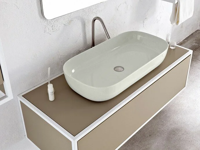 Раковина Scarabeo Glam ширина мм-760 глубина мм-390 высота мм-140 тип установки-накладной (настольный) отверстия для смесителя-отсутствуют без перелива без донного клапана материал-керамика цвет-Pearl