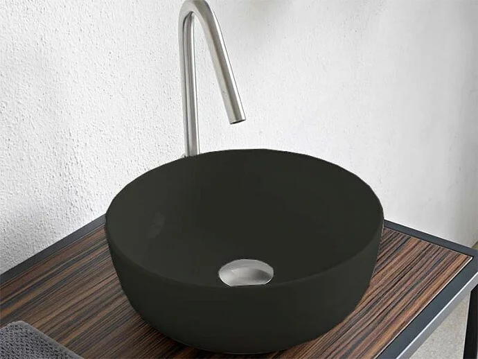 Раковина Scarabeo Glam ширина мм-330 глубина мм-330 высота мм-125 тип установки-накладной (настольный) отверстия для смесителя-отсутствуют без перелива без донного клапана материал-керамика вид грязеотталкивающего покрытия-BIOKER цвет-Lava