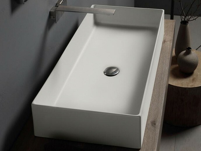 Раковина Scarabeo Teorema 2.0 ширина мм-800 глубина мм-400 высота мм-140 тип установки-накладной (настольный) отверстия для смесителя-отсутствуют без перелива материал-керамика цвет-Pearl