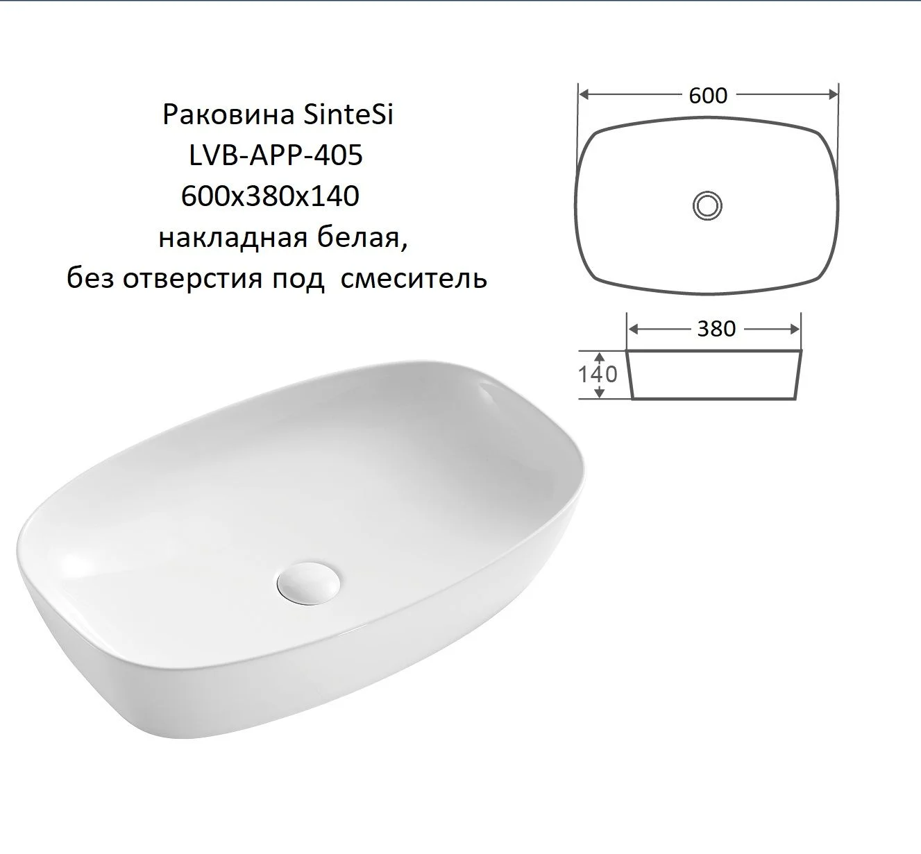 Благодаря своему качеству и эстетике, раковина Sintesi LVB-APP-405 станет не только функциональным, но и визуально привлекающим элементом вашего пространства. Используйте эту возможность обновить вашу сантехнику и наслаждаться каждым моментом, проводимым в ванной. Выберите керамическую раковину, которая подарит вам не только удобство, но и эстетическое удовольствие, сделав вашу ванную комнату местом расслабления и комфорта. Не упустите возможность сделать свою ванную стильной и современной с этой исключительной накладной раковиной.
