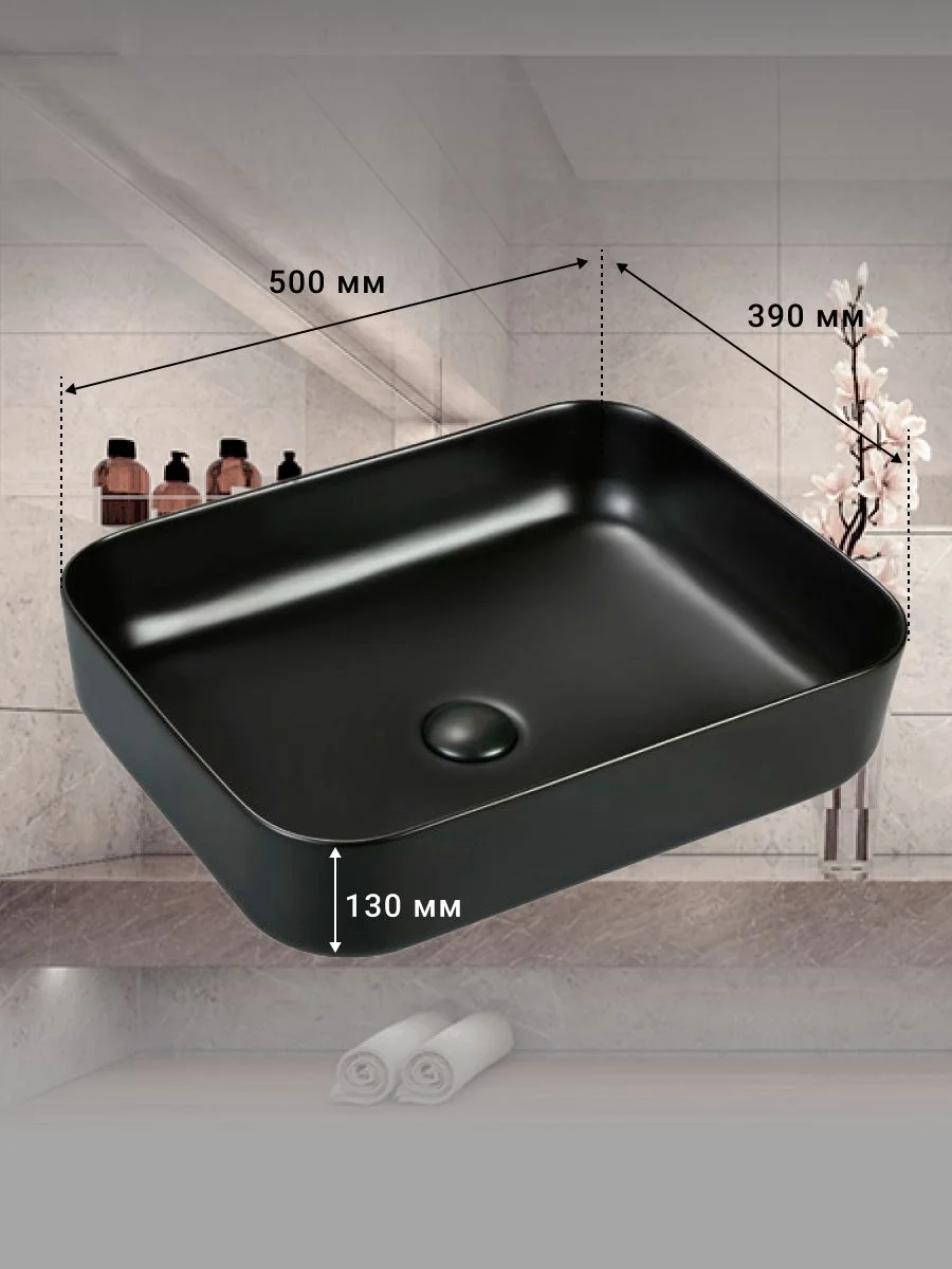 Габариты(ШхГхВ): 500*390*130 мм. Материал: фаянс. Для сифона диаметром: 4,5 см. Гарантия: 10 лет. Китай.