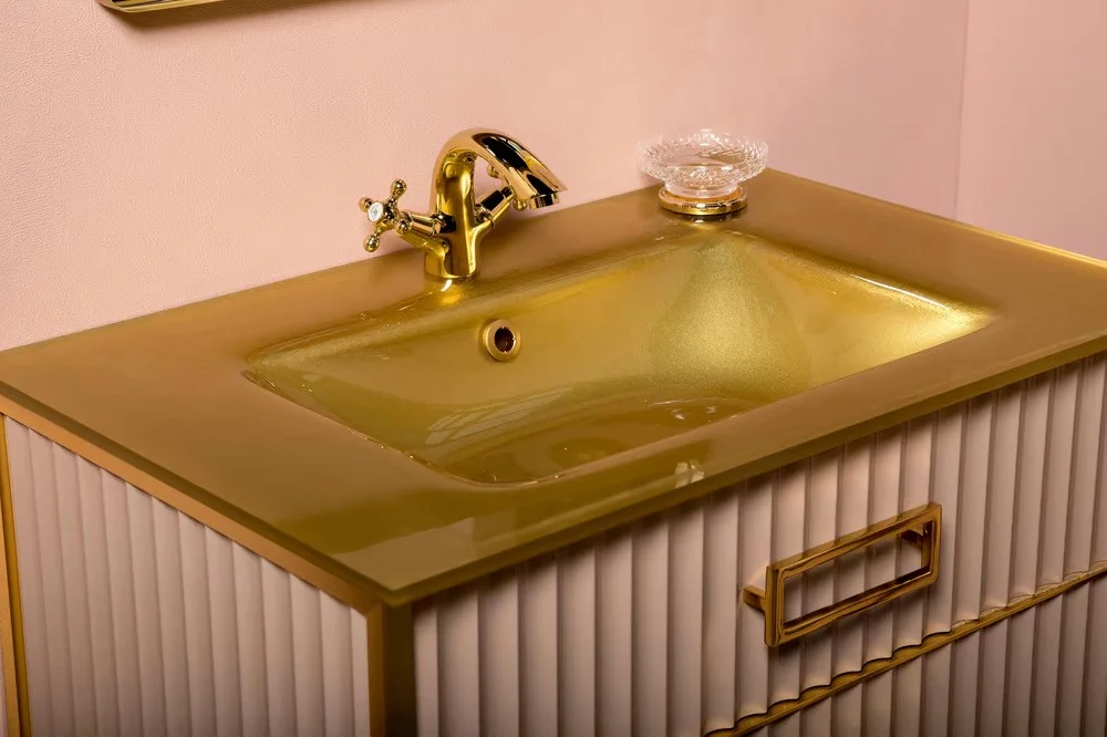 Раковина-столешница Boheme стекло 80см моноблок ЗОЛОТО