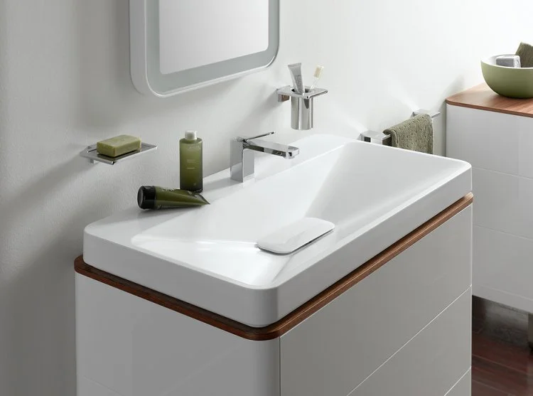 Раковины коллекции SG отличаются четкими формами в сочетании с незатейливыми элементами.Прозрачная и чистая эстетика, подчеркиваемая прямолинейными месителями, придает элегантность всему архитектурному ансамблю. Благодаря покрытию CeFiONtect грязь не пристает к раковинам. Мебель серии SG подчеркивает сдержанную элегантность.