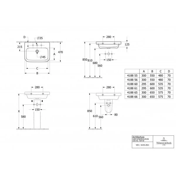 Раковины лаконичного дизайна из коллекции Architectura Villeroy & Boch.
