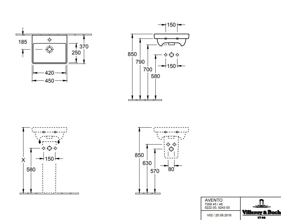 Раковина Villeroy & Boch Avento 735845R1 (7358 45 R1) CeramicPlus