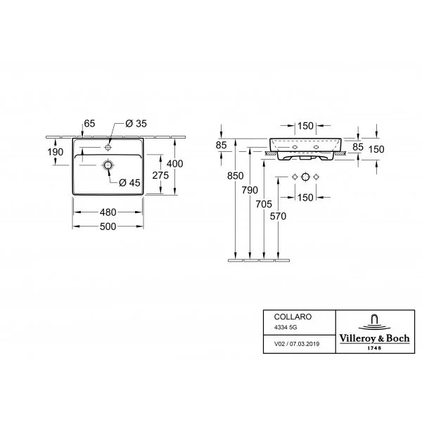 Раковина Collaro с тонкими стенками и дизайнерским кантом.