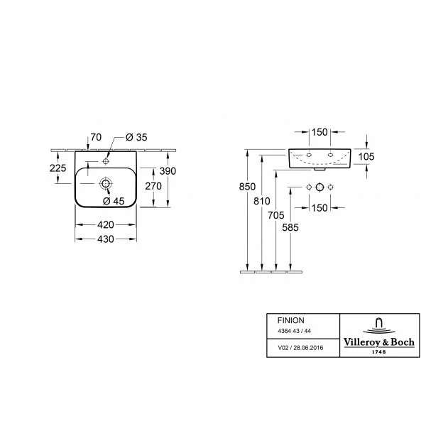 - Finion предлагает различные виды раковин в размерах от 43 до 130 см