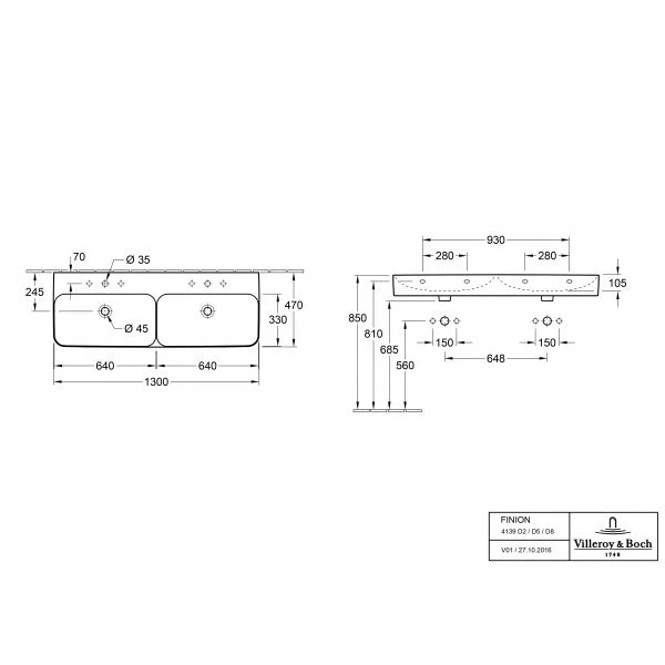 - Finion предлагает различные виды раковин в размерах от 43 до 130 см