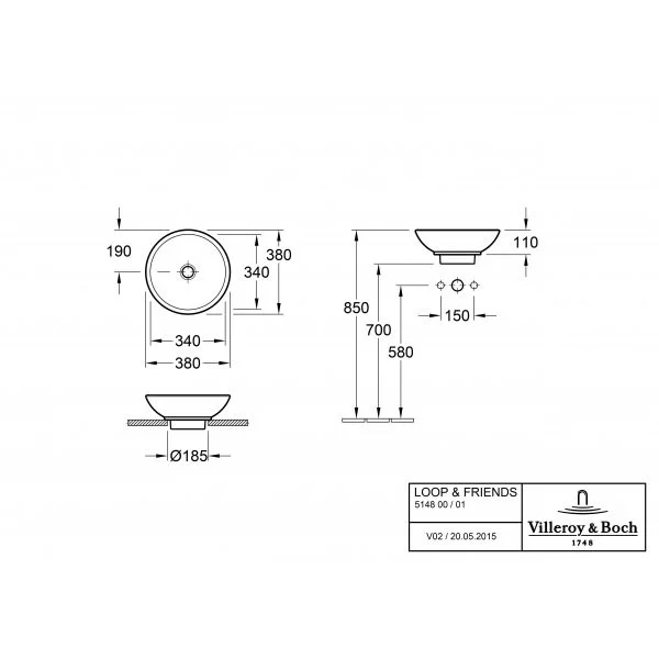 - Раковина представлена в четырех геометрических формах на выбор: круглой, овальной, прямоугольной и квадратной