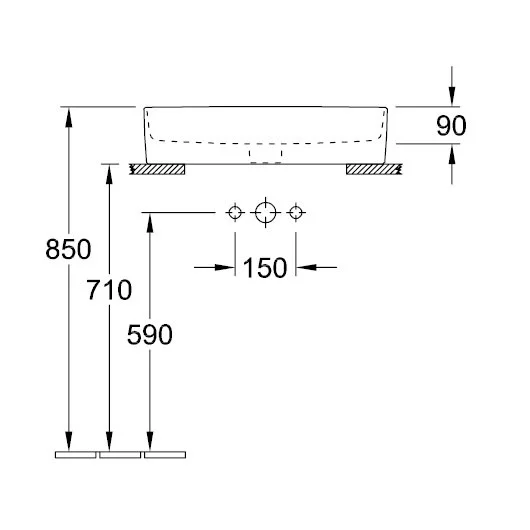 - Для 3-позиционного смесителя, центральное отверстие для смесителя выбито