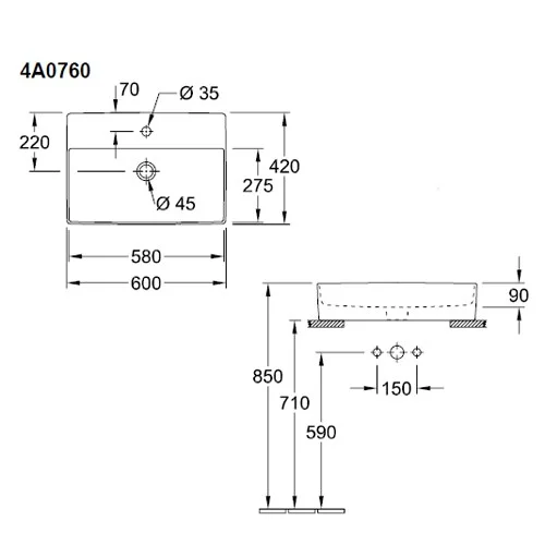 - Раковина для установки на столешницу