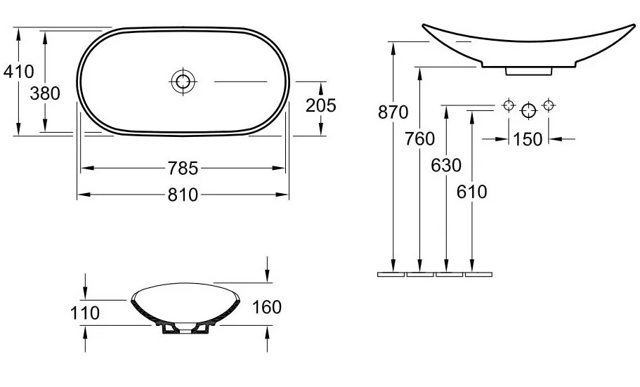 1 раковина, устанавливаемая на столешницу, 1 не запираемый клапан стока с керамической крышкой, 1 крепежный комплект