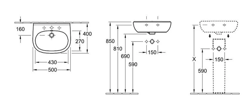 - Для 3-позиционного смесителя, центральное отверстие для смесителя выбито
