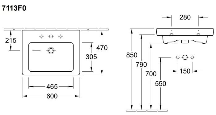 - Для 3-позиционного смесителя, центральное отверстие для смесителя выбито