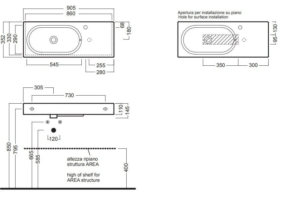 Раковина накладная YXEQ HATRIA AREA с готовым отверстием для смесителя. Может также устанавливаться на тумбу, или на полку. Комбинируются с керамическими полками, вешалками для полотенец Y0XV и сифоном YXMY в эстетическом исполнении.
