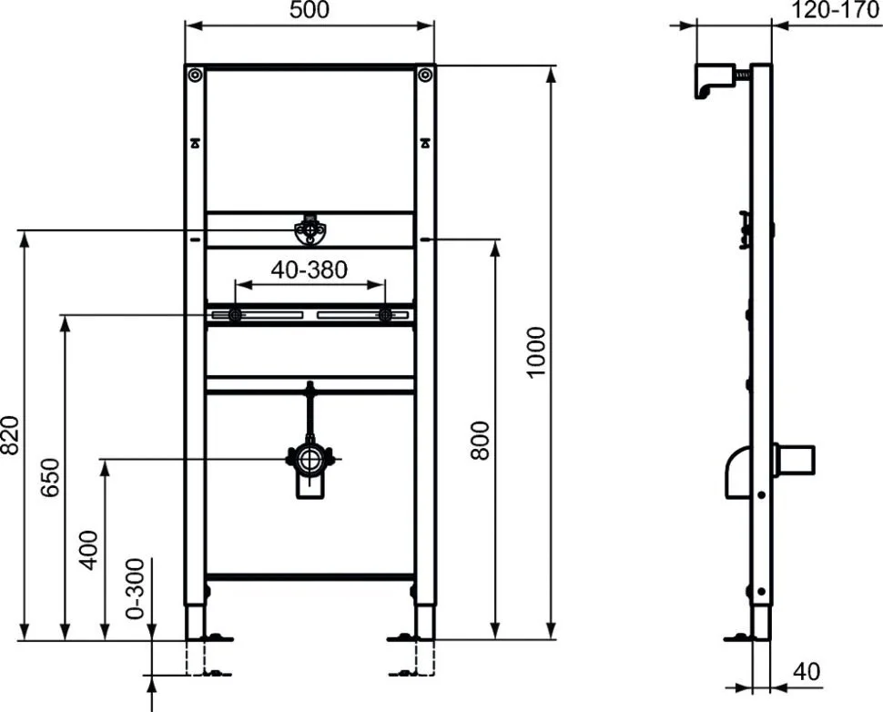 PROSYS Рама для монтажа перегородки для писсуара или поручня. Для монтажа перед капитальной стеной или между двумя гипсокартонными стенами. Рама устойчива к коррозии и царапинам. Легкая и быстрая установка при помощи системы EasyFix system. Регулируемая высота от 0 до 200 мм. Упрочненная деревянная панель. С крепежами.