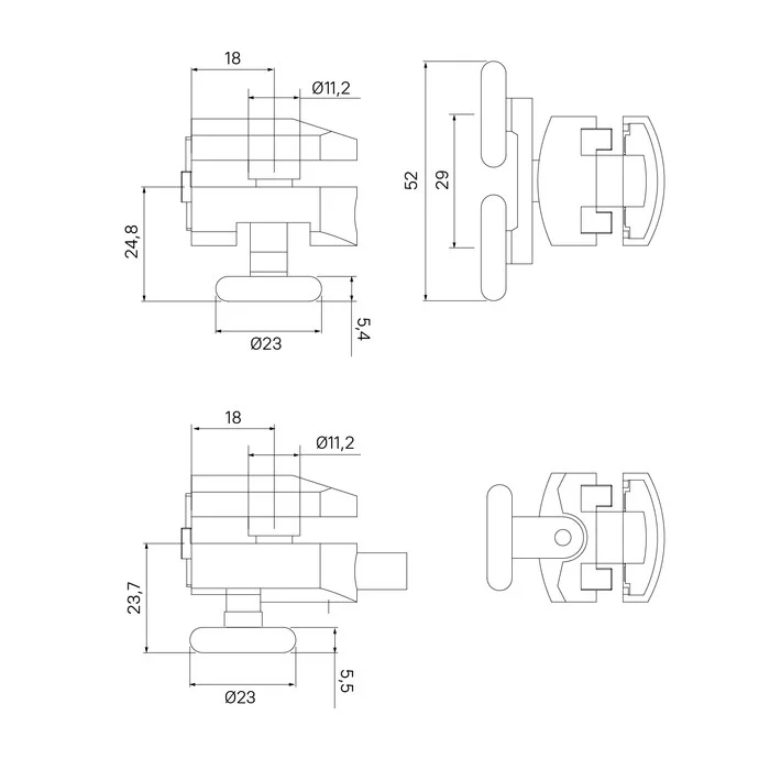 Ролики Iddis 2 верхних двойные, 2 нижних одинарные, D=23 мм серый, стекло 5-6 мм (966M23GR6DZ)