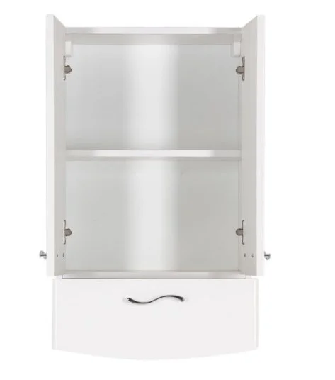 Шкаф навесной Aquanet Моника 50 (белый) совмещает в себе с одной стороны – элегантность и изысканный стиль, а с другой – качественное исполнение и функциональность. Выполненная из влагостойкого ЛДСП, такая тумба скрывает за распашными дверками пространство для хранения, которое подойдет для размещения самого необходимого, а многочисленные мелочи без труда можно спрятать в выдвижном ящичке. Тумба не входит в базовый комплект, но станет достойным его дополнением. Дизайн модели тщательно продуман и вписывается в общую концепцию коллекции. Ее отличает волнообразный узор по белому глянцу фасадов, эстетически поддерживаемый формой ручек, выполненных также в виде волны. Система доводчиков, которой оснащены дверки и шкафчики, обеспечит плавный ход, удобство использования и тем самым ничем не нарушат тишину и покой ванной комнаты. Широкий выбор, предоставляемый коллекцией «Моника», позволит каждому покупателю этой мебели почувствовать себя хоть немного дизайнером. <