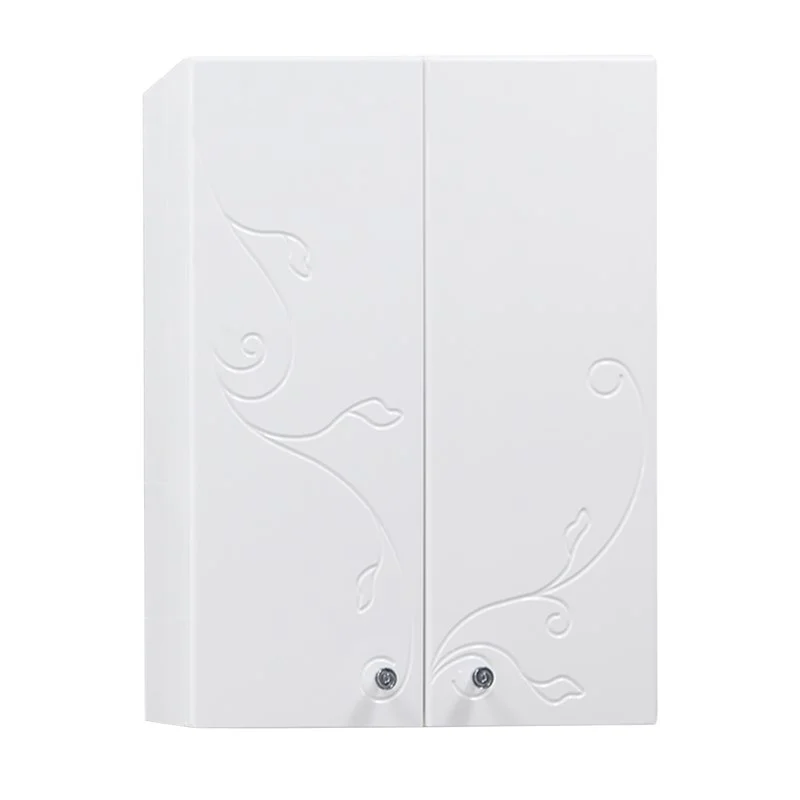 Подвесной двустворчатый шкаф Лиана изготовлен из влагостойкой ламинированной плиты и высококачественной МДФ, окрашен в белый цвет с высокой степенью глянца полиэфирной краской ультрафиолетового отверждения и украшен изящной фрезеровкой с растительным орнаментом. Благодаря своим небольшим размерам, шкаф органично впишется даже в самую маленькую ванную комнату. За фасадами расположены регулируемые по высоте полки, на которых удобно разместить все необходимые в ванной комнате принадлежности.