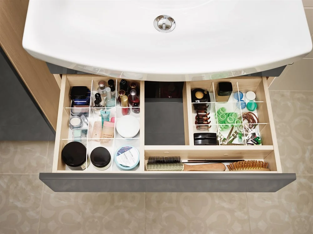 Универсальный шкафчик для ванной комнаты. Подходит для хранения косметических и гигиенических принадлежностей. Особенно хорошо смотрится вместе с зеркало SMART при комплектовании тумб больших размеров