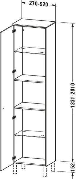 1 дверца, 2 деревянные полки, 2 стеклянные полки, Высота минимум 1331 мм - максимум 2010 мм, Ширина минимум 270 мм - максимум 520 мм, глубина мин. 196 мм - макс. 359 мм