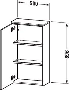1 дверца, 2 стеклянные полки с алюминиемыми креплениями