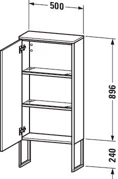 1 дверца, 2 стеклянные полки с алюминиемыми креплениями, встроенные ножки с регулировкой по высоте